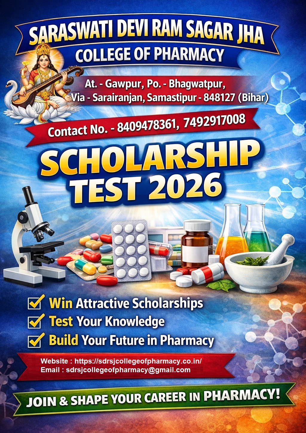 ABOUT SDRSJ COLLEGE OF PHARMACY. Saraswati Devi Ram sagar jha college of pharmacy ,one of the poineer pharmacy institute of Bihar ,as estbilshed in the year 2020.is name after the great devotee or this college is situated in samastipur Bihar.The College about 15kms away from Railway Satation & 1.8 kms from the bus stop,Musrighari road on the National Highway No-157 Sarairanjan,our campus has its scenic beauty with full of greenery.its peaceful surrounding encourages the students to build up themselves with power knowledge and moral values The Management has established a Quality Policy – Saraswati Devi Ram Sagar Jha College of Pharmacy shall strive to become an “Institution of Excellence” in the fields of Pharmacy studies with continual improvement.. Read More..